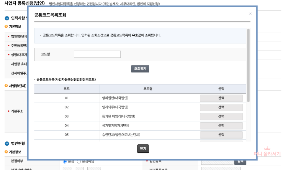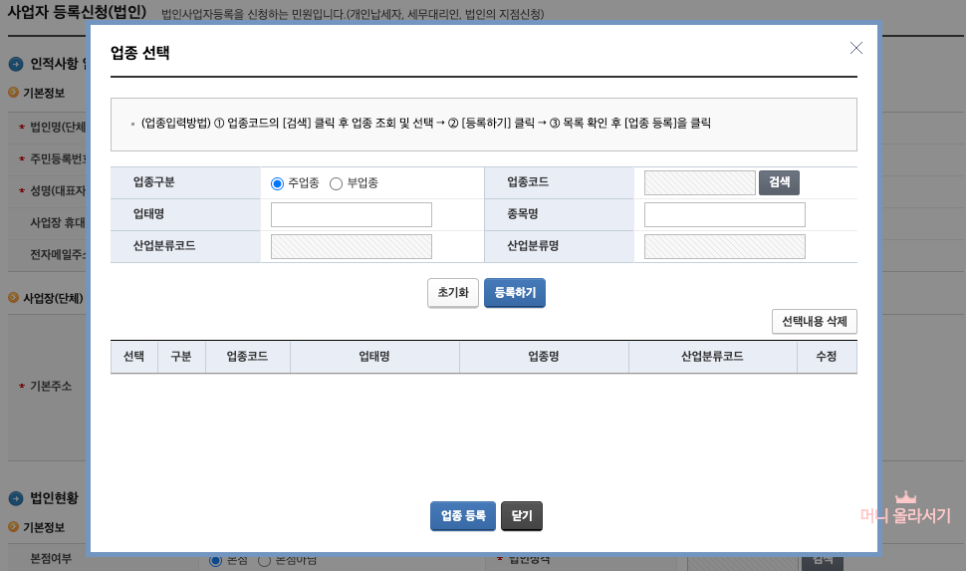 업종코드 옆에 검색 버튼을 눌러주세요.