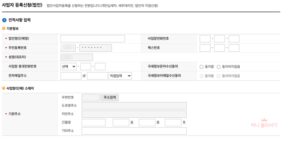 기본주소는 법인설립할 때 썼던 본점 소재지를 입력하시면 됩니다.