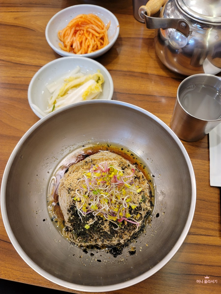 메밀면의 식감이 여름 대표 음식인 냉면보다 좋긴 하지만