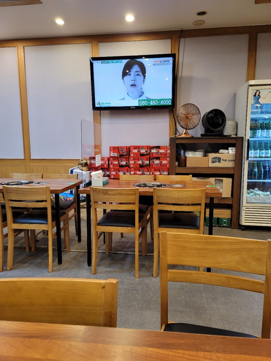 TV 아래에 신라면 박스들이 있는데 최네 부대찌개에서는