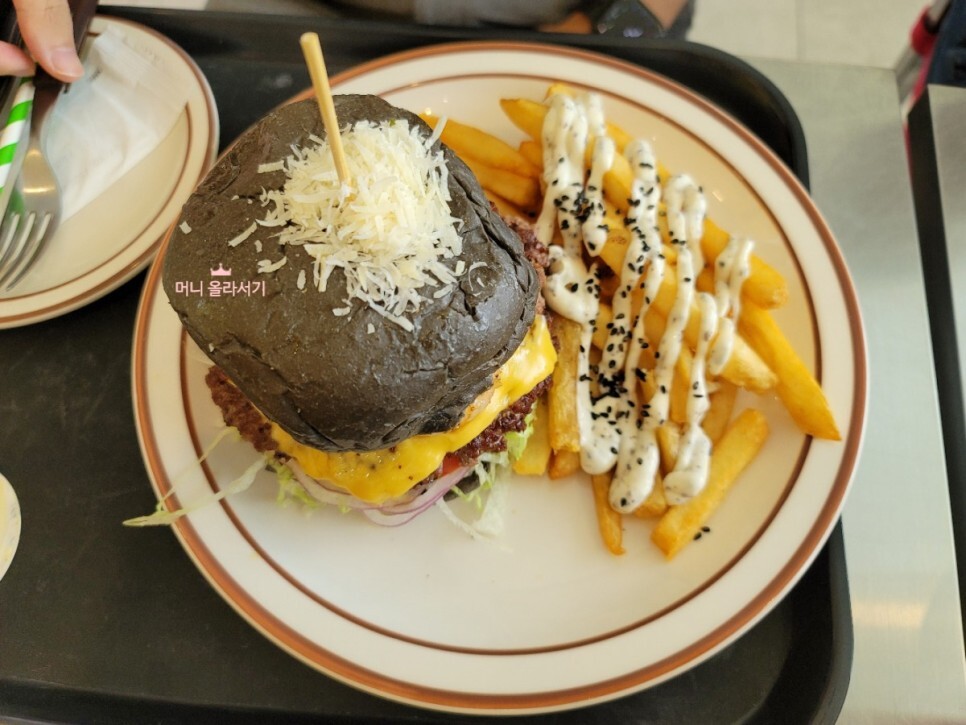 확실히 햄버거는 손으로 잡고 먹는게 맛있긴한데 손에 묻기도하고 불편해서 잘라 먹는걸 선호합니다.