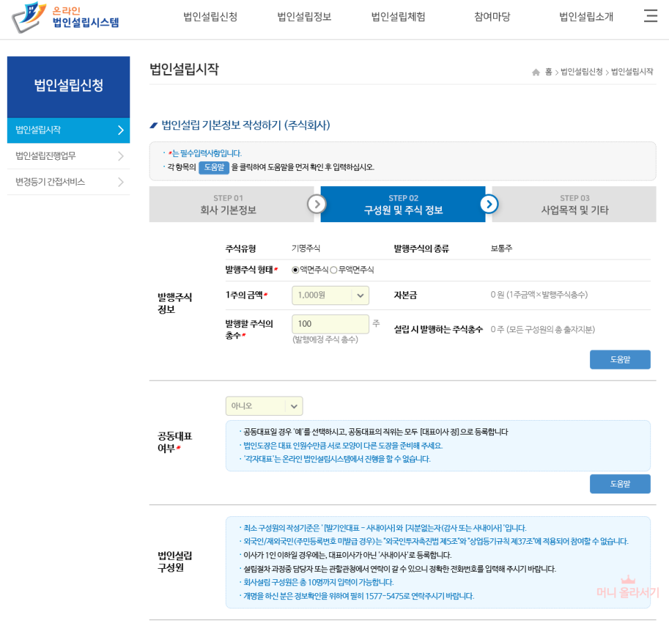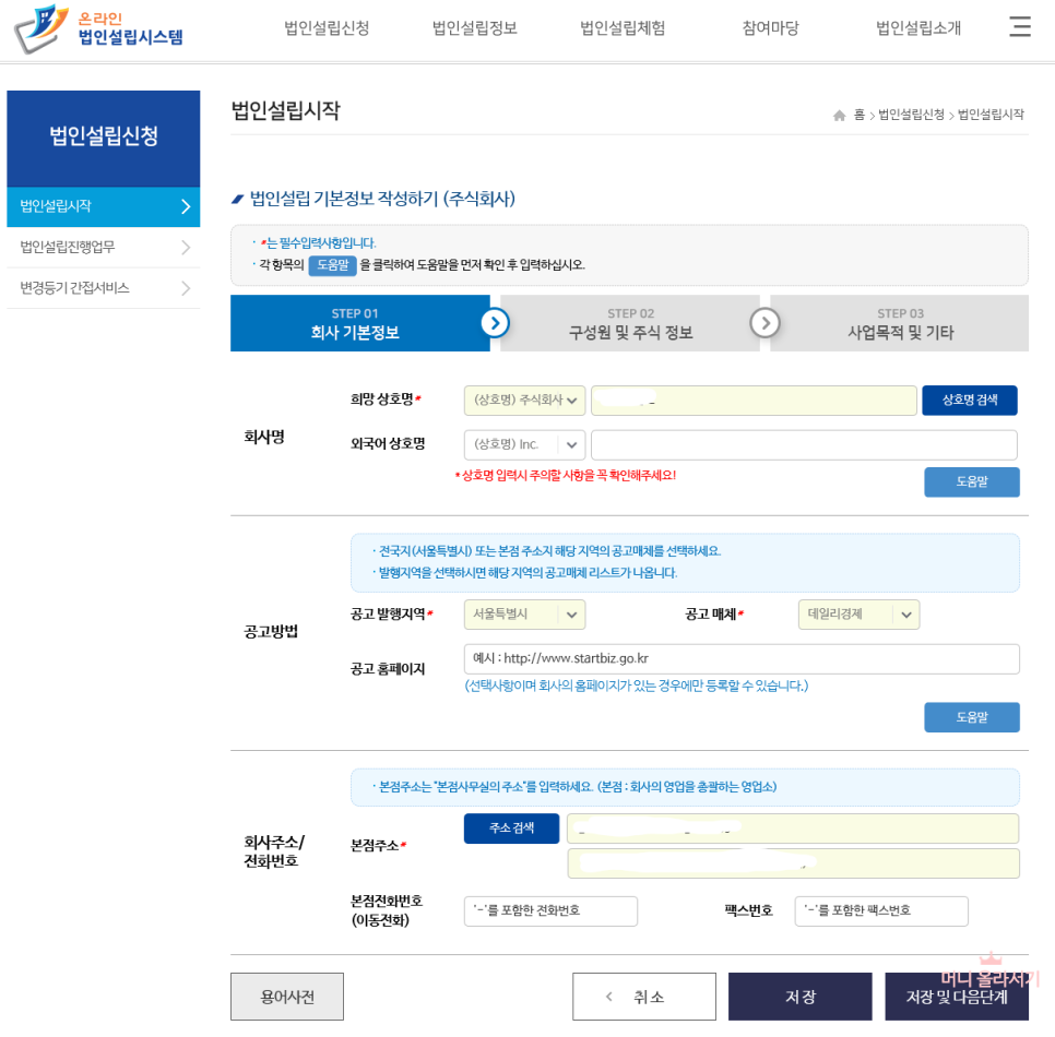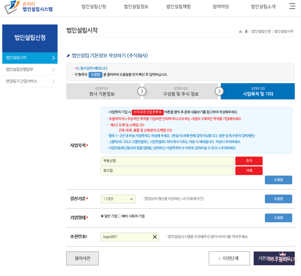 프리미엄정관 도 만들었으니 실제로 온라인 법인 설립 시스템에서 법인 설립하는 방법을 살펴보겠습니다.