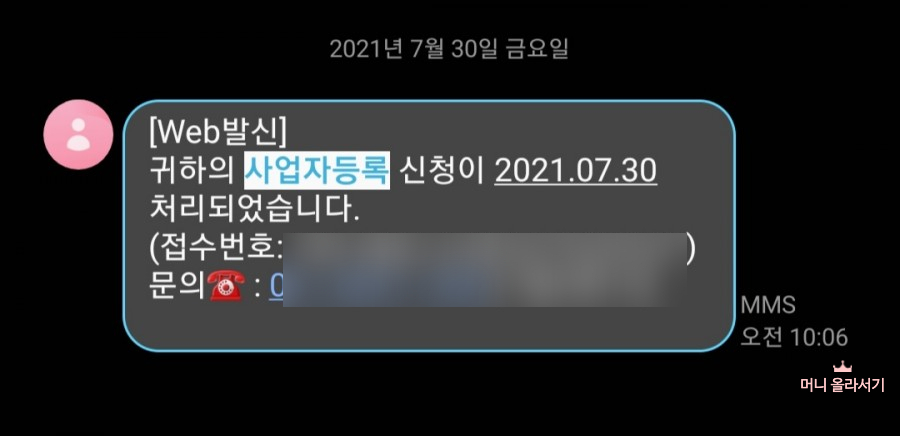 목요일 밤에 신청했는데 오전에 완료 문자가 왔어요.