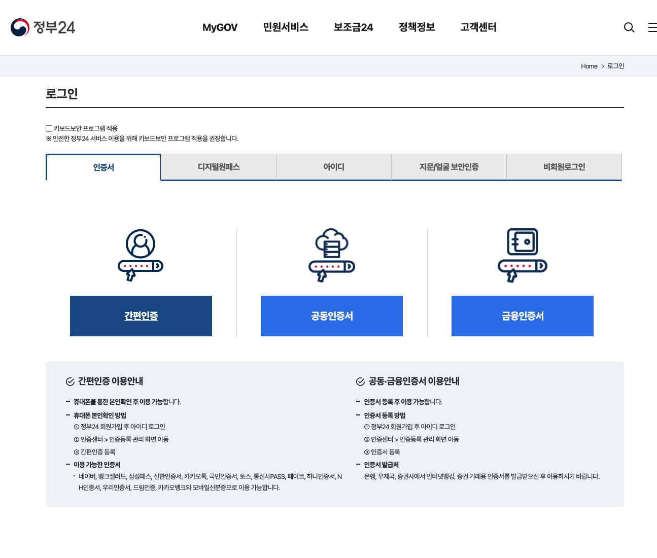 요즘은 간편인증이 있어서 로그인하기가 엄청 편리합니다.