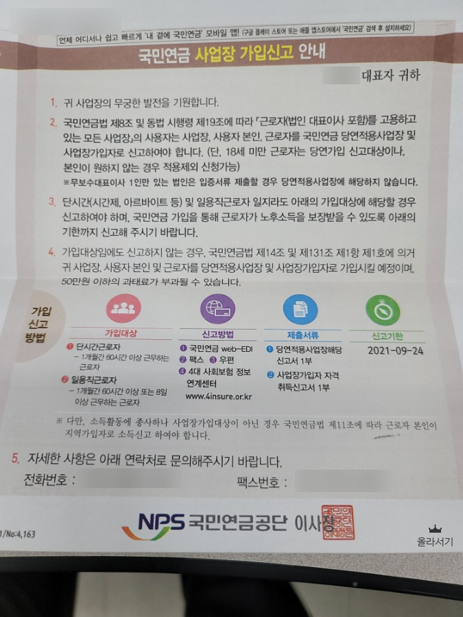 하지만 건강보험과 국민연금은 대표이사만 있는 1인법인 도 가입대상입니다.