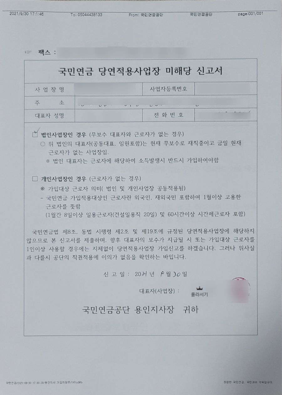 2. 국민연금 : 당연적용사업장 미해당 신고서