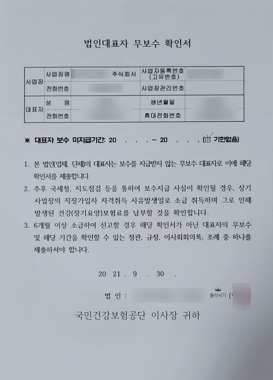 그러나 대표가 급여를 받지 않는다면 두 개의 서식을 작성하여 제출하고 가입에서 제외될 수 있습니다.