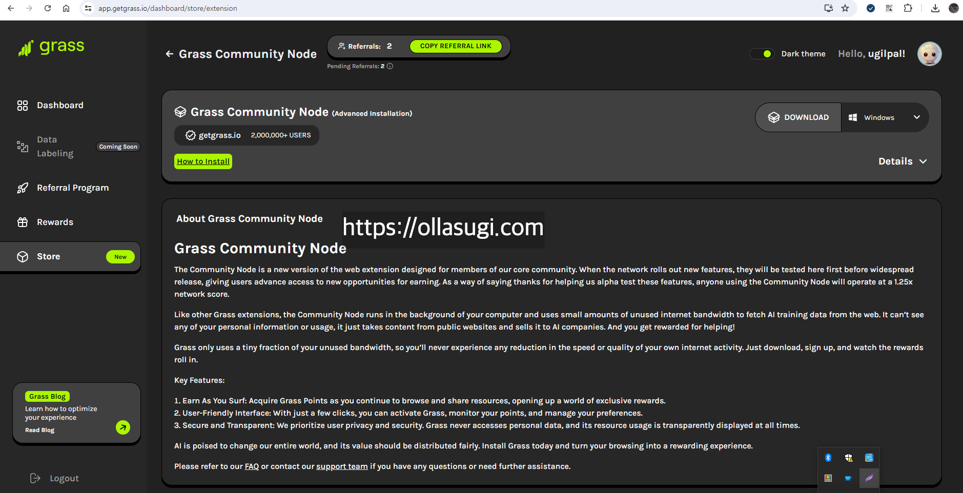 3. 브라우저에 Grass 커뮤니티 노드 익스텐션 설치