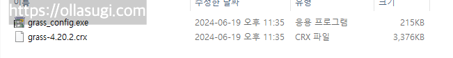 그리고 grass-4.20.x.crx 파일을 크롬 창으로 드래그해서 설치해줍니다.